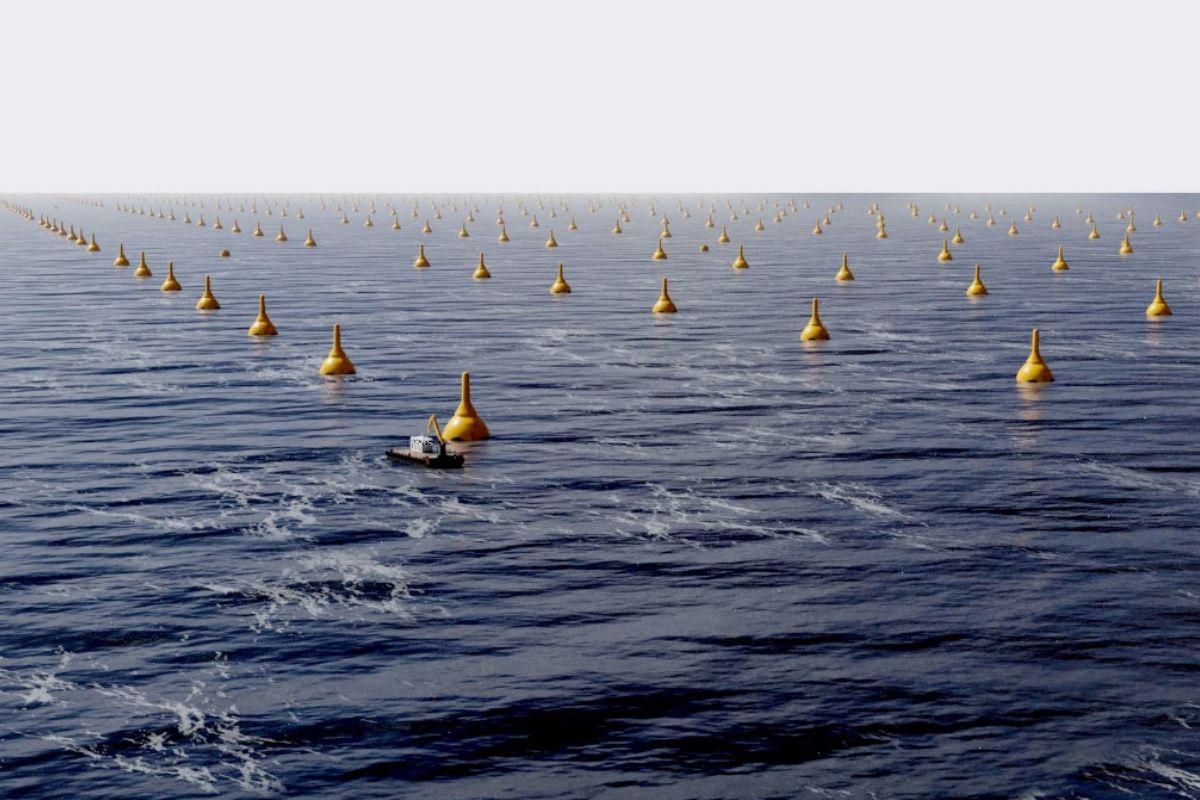 Vision d’artiste d’une mer où sont disposés des systèmes CorPack.
