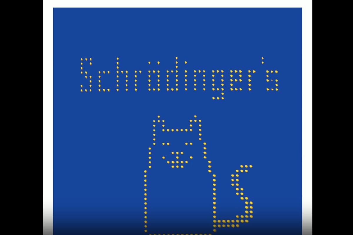 L’animation, réalisée à l’Université des sciences et technologies de Chine à Shanghai, montre des images reconstituées à partir de 2 024 atomes de rubidium. Disposés en grille dans un carré de 230 micromètres de large (soit deux fois l’épaisseur d’un cheveu), ces points lumineux dessinent une version stylisée du célèbre paradoxe du chat de Schrödinger : l’animal est à la fois mort et vivant… jusqu’à ce que l’observateur ouvre la boîte.