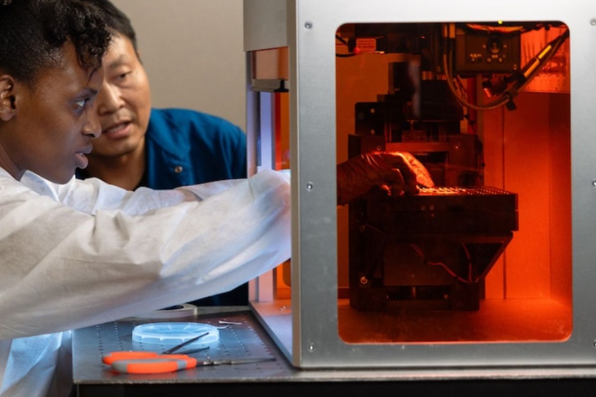 Image : Des chercheurs montent des cristaux d’arséniure de bore sur le système FDTR afin de mesurer leur conductivité thermique (crédit : Université de Houston)