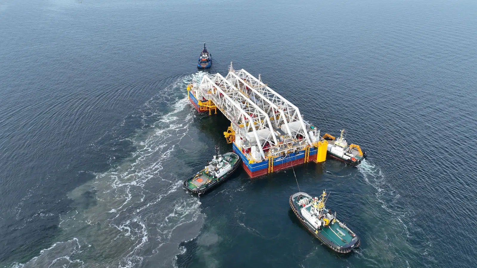 L’objectif consiste à déposer le segment dans la tranchée marine avec une précision millimétrique, malgré la masse gigantesque de l’ouvrage et les mouvements de l’eau.
