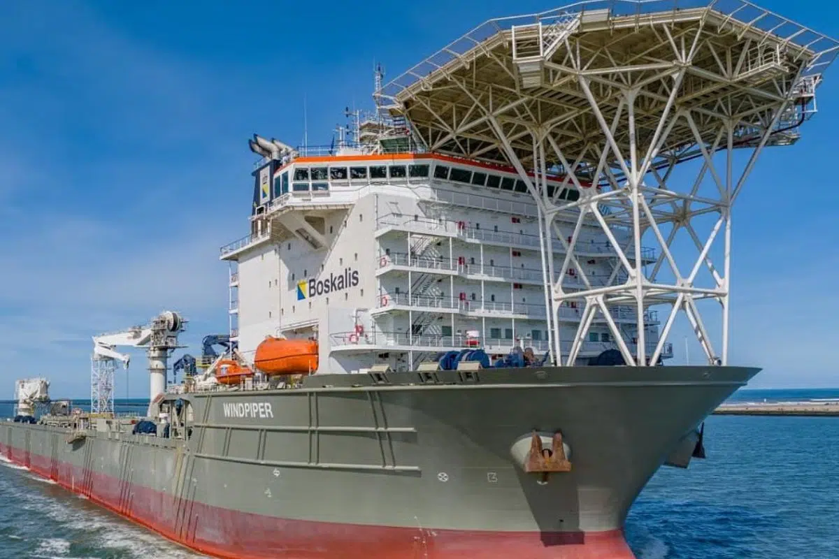 article relatant l’arrivée d’un nouveau navire d’installation de roches acquis par Boskalis, destiné aux travaux offshore, notamment pour les infrastructures énergétiques comme les parcs éoliens en mer.