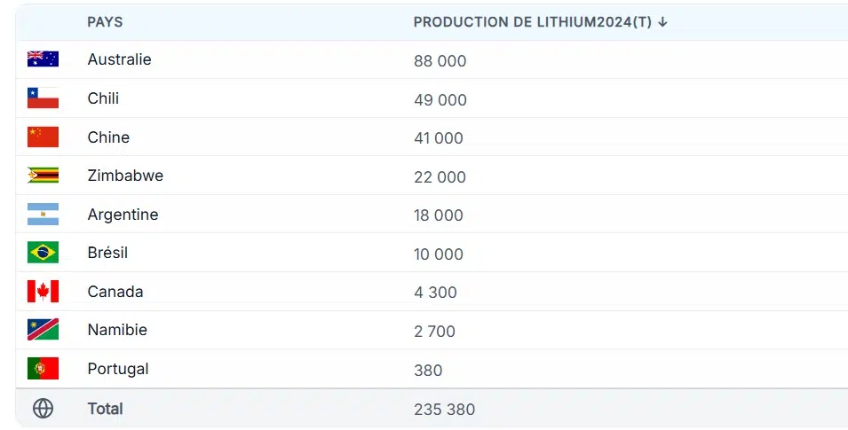 analyse comparative de la production mondiale de lithium par pays, fournissant des données chiffrées et une hiérarchie des principaux producteurs à l’échelle internationale. - Annales des Mines, Projets d’exploitation de lithium en France et en Allemagne : des convergences possibles ou une compétition effrénée ? (consulté en 2026),